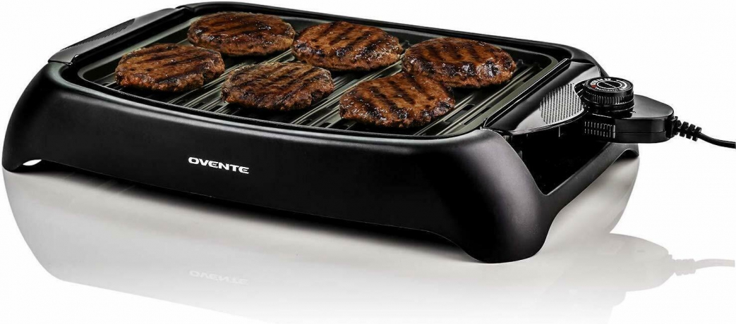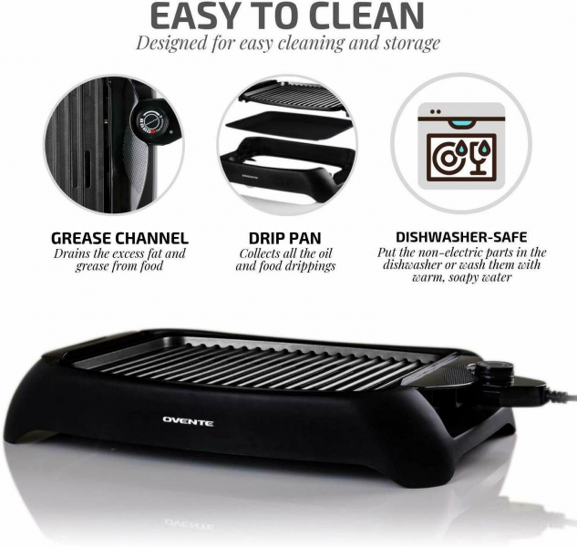 Ovente Electric Cooking Grill 13 x 10 Inch Flat Plate, Nonstick Cast Iron Griddle with Oil Drip Pan & Temperature Control, Indoor Kitchen or Outdoor Compact for BBQ Grilling Chicken, Black GD1632NLB Reviews
