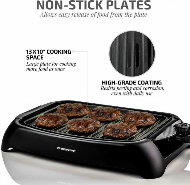 - COOK MORE FOOD AT ONCE – Grill the chops and steaks for everyone and have them served on the dining table just in time! The Ovente Indoor Grill has 13 × 10-in cooking plate so you can grill more food in one go.