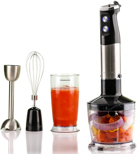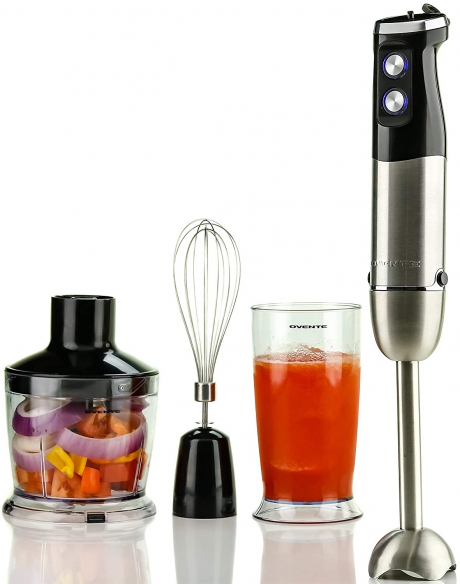 Ovente Multi Purpose Immersion Hand Blender Set 500 Watts with 6 Speeds Control and 3 Premium Attachments including BPA-Free Food Processor, Egg Whisk, and Mixing Beaker, Black (HS685B) Customer Reviews