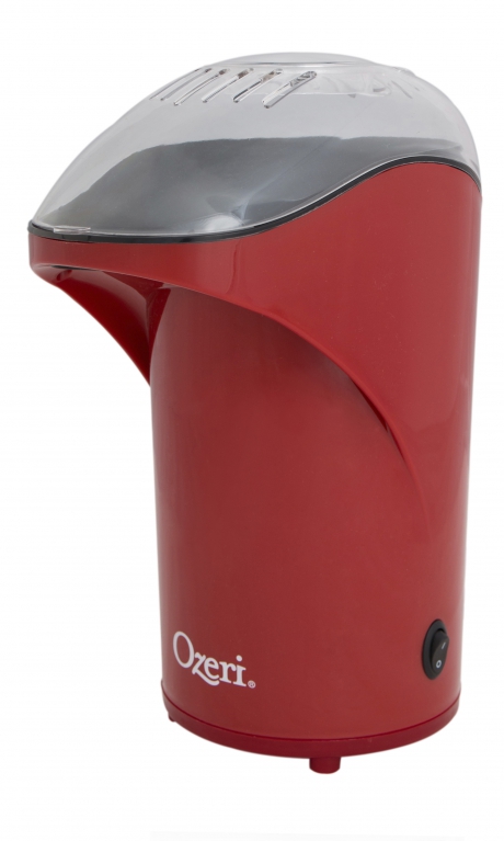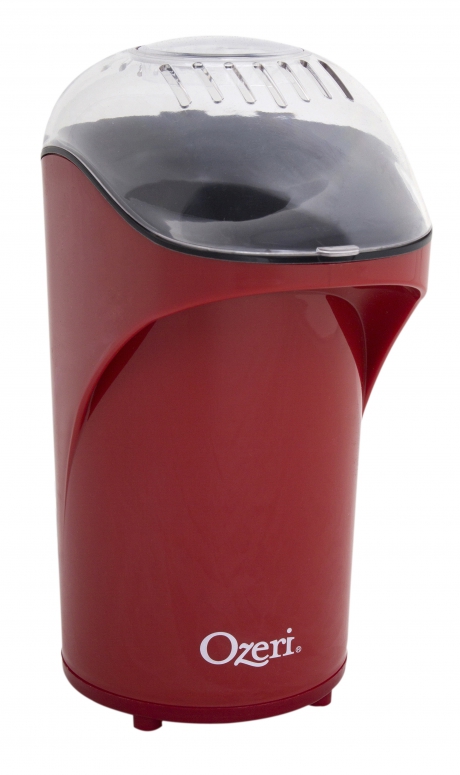 Introducing the new and improved Ozeri Movietime II Popcorn Maker. A hot air popcorn maker par excellence, the new Ozeri Movietime pops out a prolific 26 cups of popcorn, equivalent to 2 and a half large bowls, in under 2 ½ minutes. Now available in multiple colors to match your kitchen décor, the Ozeri Movietime II outperforms microwaves and other devices by more than 50%, and liberates you from more expensive microwave bags by utilizing hot air for a low calorie treat of puffier and healthier popcorn, yet free of saturated fats, artificial flavors, unneeded salt and preservatives. For the indulgent-prone, the Ozeri Movietime II includes a removable butter cup that automatically melts the butter for that ultimate savory popcorn treat. The Movietime II works with regular and gourmet popcorn types and offers a see-through chute for that traditional movie-theatre taste and experience. The see-through chute convenient directs the fresh popcorn into a bowl, and detaches effortlessly for easy cleaning. The Ozeri Movietime II is certified to North American electric standards, simple to clean, with auto sleep technology for the best in safety and enjoyment.