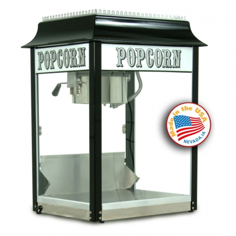 Pops (147) 1-ounce servings per hour.High-output hard-coat anodized aluminum kettle.Simply rotate handle to the right to release.Heavy-duty gear motor; all metal gears.Durable cabinet with stainless steel foodzone, tempered glass panels, and presentation lamp.Made in the USA.