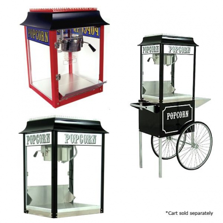 Durably constructed to stand up to everyday use. Fits on your countertop, or make it mobile with a matching popcorn cart, sold separately. Your friends will love watching movies or drinking beers at your place with with this 4 oz popcorn machine! Choose bright red or sleek black and chrome finish.