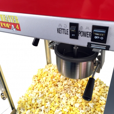 Pops (92) 1-ounce servings per hour.High-output hard-coat anodized aluminum kettle.Simply rotate handle to the right to release.Heavy-duty gear motor; all metal gears.Durable cabinet with stainless steel foodzone, tempered glass panels, and presentation lamp.Made in the USA.
