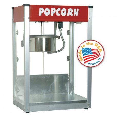 Pops (147) 1-ounce servings per hour.High-output hard-coat anodized aluminum kettle.Simply rotate handle to the right to release.Heavy-duty gear motor; all metal gears.Sturdy cabinet construction with easy-to-clean surfaces and presentation lamp.Made in the USA.