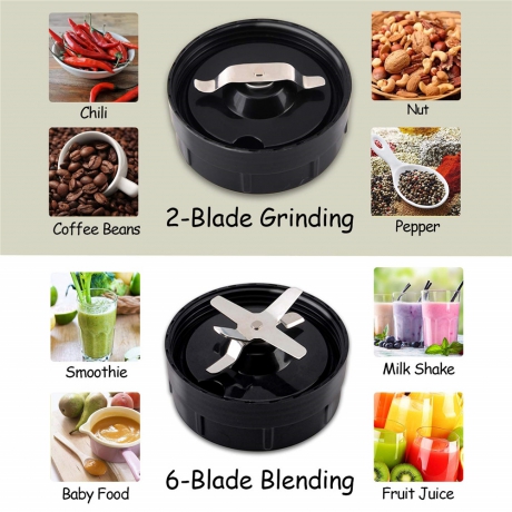 2-IN-1 BLENDER & GRINDER SET: This personal smoothie blender supports blending and grinding, not only can make smoothie, shake, fruit vegetable juice, baby food, but also grinding nuts, coffee bean, spices, etc. This multi-functional bullet blender saves your money