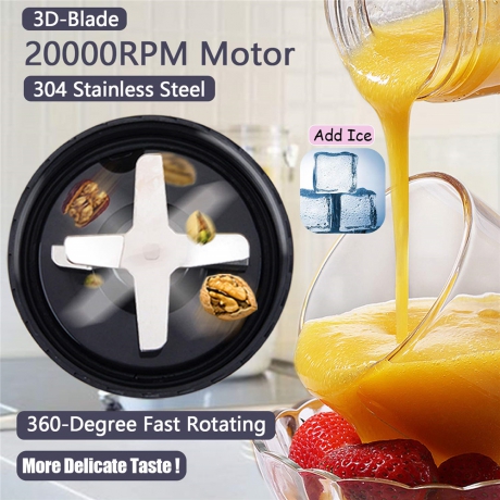 POWERFUL 1000W MOTER: Strong 1000W / 20000RPM pure cooper motors give you efficient and quiet processing, and 304 stainless steel 6-blades allow you blend most of fruits in 10s. 2-blades allow to grind beans as powder, which is smooth and delicate