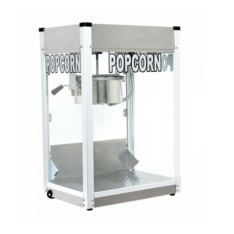 The stainless steel construction along with the tempered glass panels provide for an easy-cleaning and exceptionally durable popcorn machine popper. The Professional Series 8 oz popcorn machine is easy to fit into small areas due to its 20" wide by 14" deep footprint. The Hard-Coat anodized aluminum popcorn kettle means superior performance while providing ease of cleaning. The heated warming deck will keep popcorn warm and fresh for long periods of time.