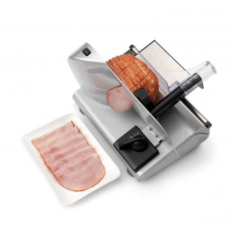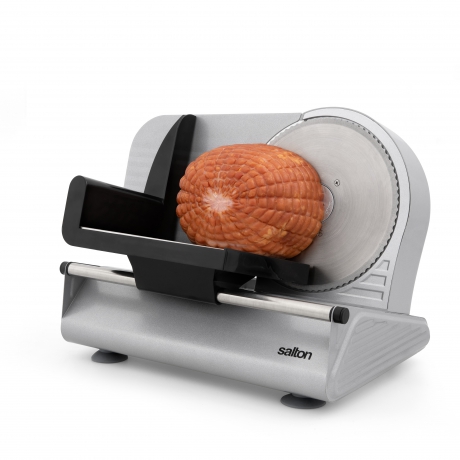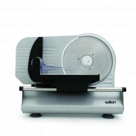 At-home entertainers and food lovers alike recognize the fun and versatility of a charcuterie board. With the Salton Electric Food Slicer, you can bring the convenience of the deli to your home and craft delicious meat, cheese, and bread party platters. The 7.5" (19 cm) serrated stainless steel blade allows you to slice from deli thin 1/16" (1 mm) to a heartier 9/16" (15 mm), sporting an easy-to-use thickness-adjusting knob. Slice your favorite meats, cheeses, breads and more. The retractable food platform flips forward for easy cleaning, the food pusher supports easy slicing, and the angled base allows for convenient serving. Why pay more for deli alternatives when you can slice with precision in the comfort of your home?