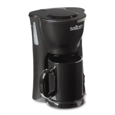 The Salton space saving 1 cup coffee maker brews directly into your favorite mug. Includes a ceramic mug and also fits a variety of other size mugs.