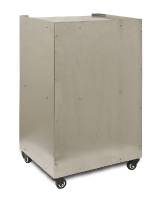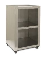 The Silver Screen 8 Pedestal offers a stainless-steel base with heavy-duty casters and storage capabilities. The sleek design matches the Silver Screen 8 Ounce Popcorn Machine by Benchmark USA.