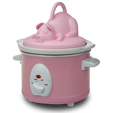 Pulled Pork Slow Cooker; Easy to use, turn it on and cook all day. Tender results every time with delicious fall of the bone meat every time. The perfect solution for Authentic BBQ slow cooked flavor. Includes a Ceramic Cooking Pot that holds up to 1.5 Quarts. Includes a Vented Pig Shaped Lid that allows steam to escape during cooking. Use the temperature control that's perfect for cooking and warming.