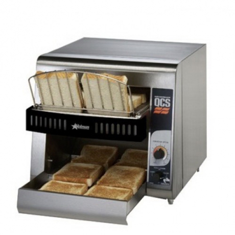 The Star Holman conveyor toaster uses qt. infrared heaters that provide consistent heat. This toaster will toast bread, bagels, or English muffins to perfection. The forced convection system circulates pre-heated air and keeps the toaster cool to the touch. The compact design takes up little space in the kitchen and the easy to use control panel allows you to set the perfect color for toasted items. The energy saving power switch reduces electric consumption by 75% and a inSmartin crumb tray prevent crumbs from getting on the counter.. Forced air convection system. Quartz infrared heaters provide faster, more consistent heating than traditional heating elements and toasts bagels and English muffins in second. Compact design. Easy to use control panel. Variable speed control