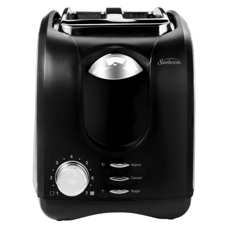This Sunbeam toaster toasts bread to perfection. The down lever works as it should. It stays down until the toast is toasted to the degree dialed in. The crumb catcher is easily cleaned. The toaster looks good and is light-weight. I am very pleased with this product.