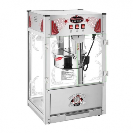 This commercial quality machine features stainless-steel food-zones, easy cleaning stainless-steel kettles, heated warming decks, old-maid drawers (for un-popped kernels), tempered glass panels and an industry leading 16-ounce kettle operating on 1500 watts. You won't find a comparable unit on the internet. With the antique style design, you will be reminiscing about your early days at the ball game, carnival, or the movie theater. We have combined the best of both worlds--not only are you getting today's technology, you get an eccentric design with all the conveniences of the modern era.