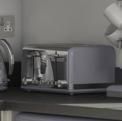 The 4 Slice Retro Toaster comes with an electronic browning control and the capacity to make up to 4 slices of toast at a time, perfect for the morning breakfast rush.