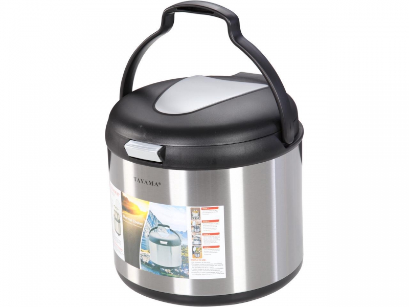 Features: -Capacity: 7 Quart. -Economical, time saving and energy saving 80% of electricity or gas. -Food stays warm even after 6 hours. -Reduce stovetop cooking time to only 10-15 minutes and let the thermal cooker do the rest!. -Suitable for dinner parties and family gatherings. -Great for picnics, camping and outdoor travel use. Finish: -Silver/Black. Steaming Basket Included: -Yes. Portable: -Yes. Dishwasher Safe: -No. Capacity: -7 Quarts.