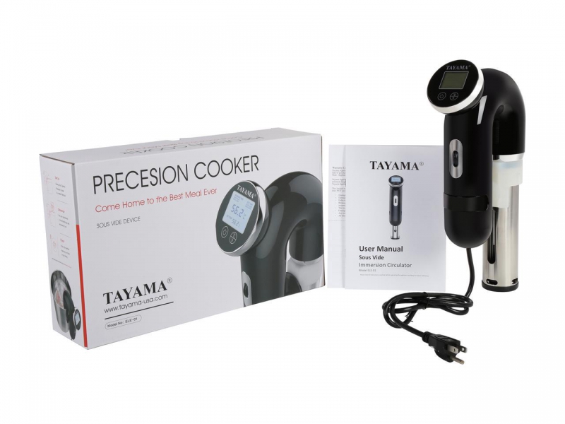 Tayama® Sous Vide Immersion Circulator is a low cost, compact alternative to self contained sous vide water ovens. Easily clips to most 3.5 gallon pots, creating a classic sous vide system with utensils you already own. Get consistent and outrageously delicious results with sous vide steak, chicken, seafood and eggs. Home cooks can now easily rival five star steakhouses in surreal flavor and buttery textured food. Leave meat, poultry and fish to simmer for hours. The genius of sous vide invites deep, penetrating flavor during the cooking process and soft, incredibly moist results. Exclusive active control thermostat incorporates precision temperature settings within +/- 0.01 Degree for complete accuracy and control over the entire cooking process.