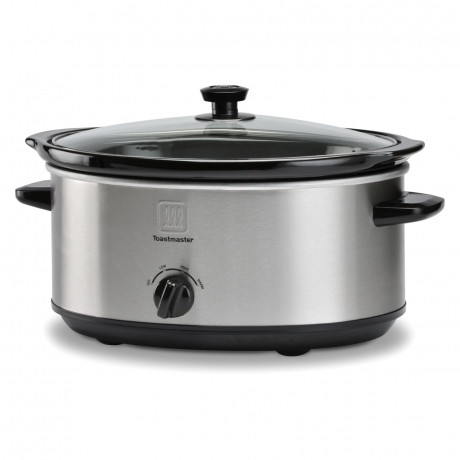 Ideal for cooking large stews, chili's, pot roasts and more, the 7-Quart Slow Cooker from Toastmaster allows you to set the temperature and allow your recipe to simmer. Constructed to last, the cooker features a removable stoneware insert with a glass lid for easy viewing and a brushed stainless steel finish. The cooker offers a variable heat control (low, high, and warm) with an oversized dial control. Cool touch handles allow you to move the cooker as needed for serving and non-skid rubber feet keep it steady.