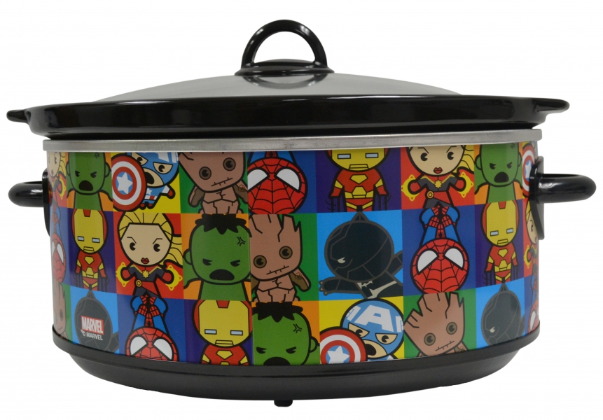 Cook up some fun with this super-cute, super-useful 7-Quart slow cooker. Featuring Kawaii versions of Spidey, Captain Marvel, Groot, Captain America, and other Marvel favorites, you’ll smile every time you throw in your favorite ingredients. The removable stoneware insert makes serving and cleanup a breeze. Be a hero at every meal!