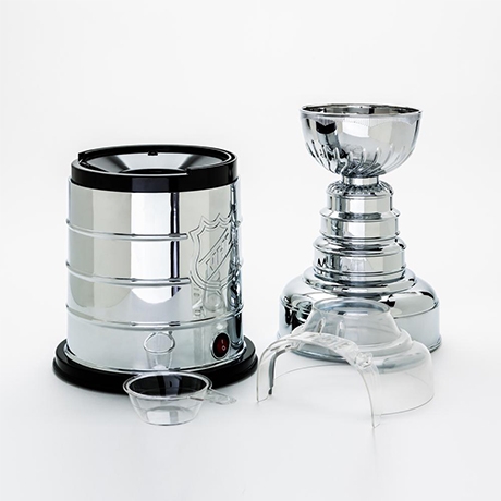 This officially licensed NHL Stanley Cup Popcorn Maker makes a fantastic addition to anyone who enjoys watching hockey. Many things have been consumed out of the bowl of the Stanley Cup: champagne, beer, cereal and coffee. But now popcorn? This popcorn-making machine stands 17" tall and has an authentic appearance designed to replicate the Stanley Cup. Once opened, it becomes an air popper. The machine has a canopy and contains five built-in air vents, and the aluminum tub easily becomes a stylish serving bowl.