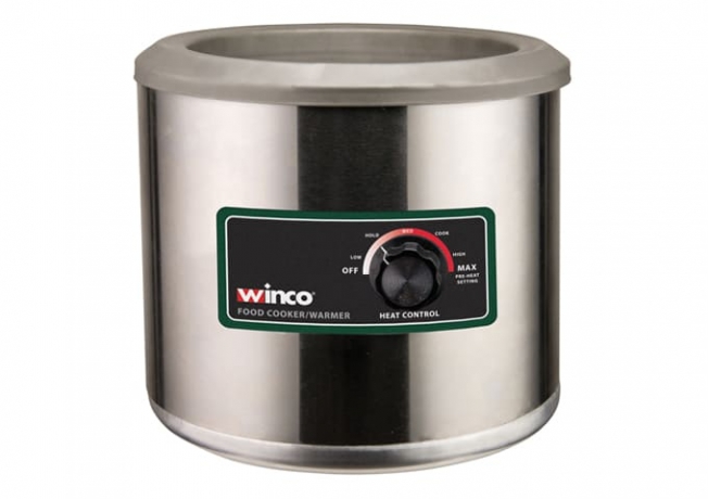 Winco FW-7R500, 7 Quart Electric Round Food Warmer, Commercial Buffet Portable Steam Food Cooker, ETL Listed offers a highly efficient heating distribution and can easily an endure the harshest kitchen environments. This amazing food warmer by Winco has an insulated heating compartment for maximum efficiency. Easy control settings keep food at the right temperature all day; monitor status with the indicator light. No-drip rim will help you to keep serving area neat and clean! Overall dimensions of the warmer: 11"L x 11"W x 9-1/2"H. Inside dimensions: 8-1/4" diameter x 6" deep. It has 3 settings: Low = 140°F / Medium = 170°F / High = 200°F. This conveniet Food Cooker/Warmer heats up to 212°F (100°C). Besides, it is ETL listed for electrical safety, conforms to UL-197 and CSA C22.2 and ETL listed for sanitation, conforms to NSF-4. Crafted from heavy duty stainless steel, this electric food warmer will easily withstand years of daily use. Idea choice for catered events, cafeterias, buffets or busy concession stands, this food warmer delivers 120V~60Hz, 550W.