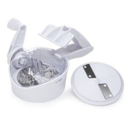- Ultimate Handheld Slicer and Grater Revolving Food Processor by Carefree Kitchen Unmatched slicing and grating features. Innovative flat grating platform offers extreme safety from blade. Sliced and grated food slides right into container for neat meal prep work. Features: Disassembly for cleaning is a snap Extreme safety with flat grating platform Ultra smooth rotary slicing and grating arm Blade can be stored in main unit when not in use Includes: 1 x Ultimate Handheld Slicer and Grater Revolving Food Processor
